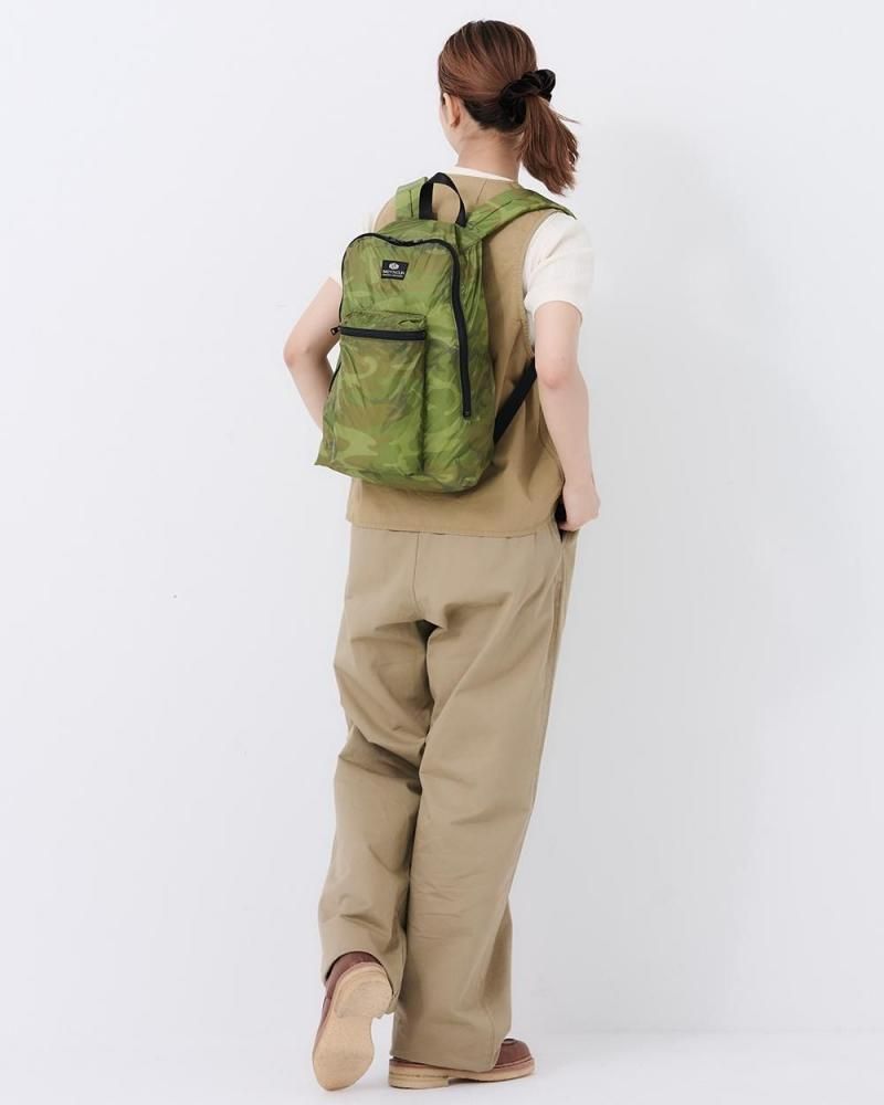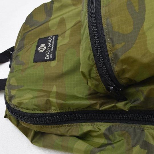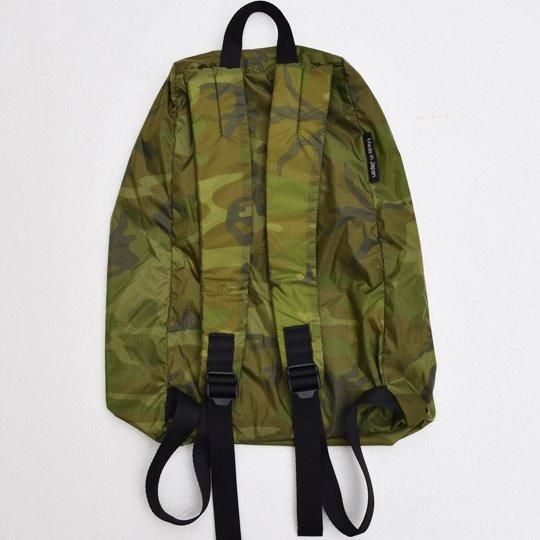 カモフラージュ柄の、高機能素材リップストップナイロンを使用したデイパック。