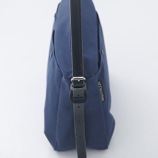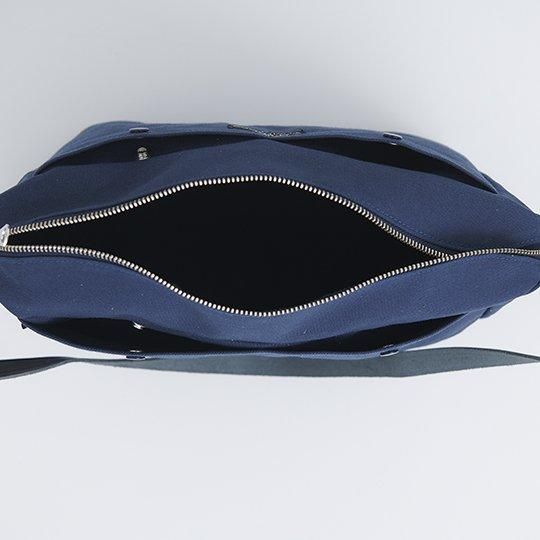 生地に合わせて革ベルトやジッパーもネイビーのトーンで配色されています。