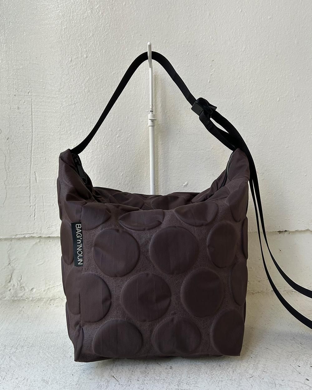 インパクトたっぷりなドットのパターンを洋服感覚で持てるショルダーバッグ。