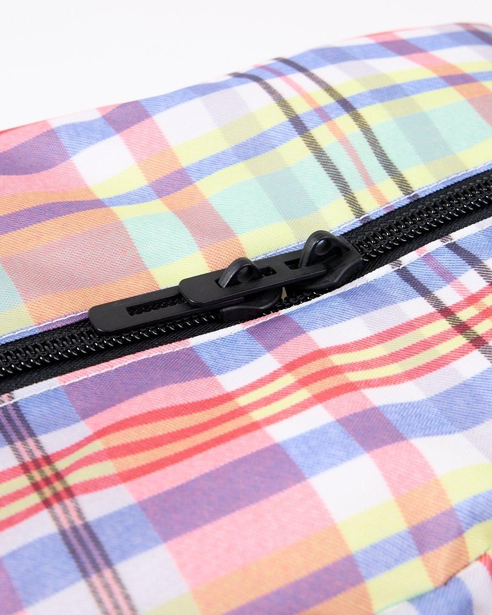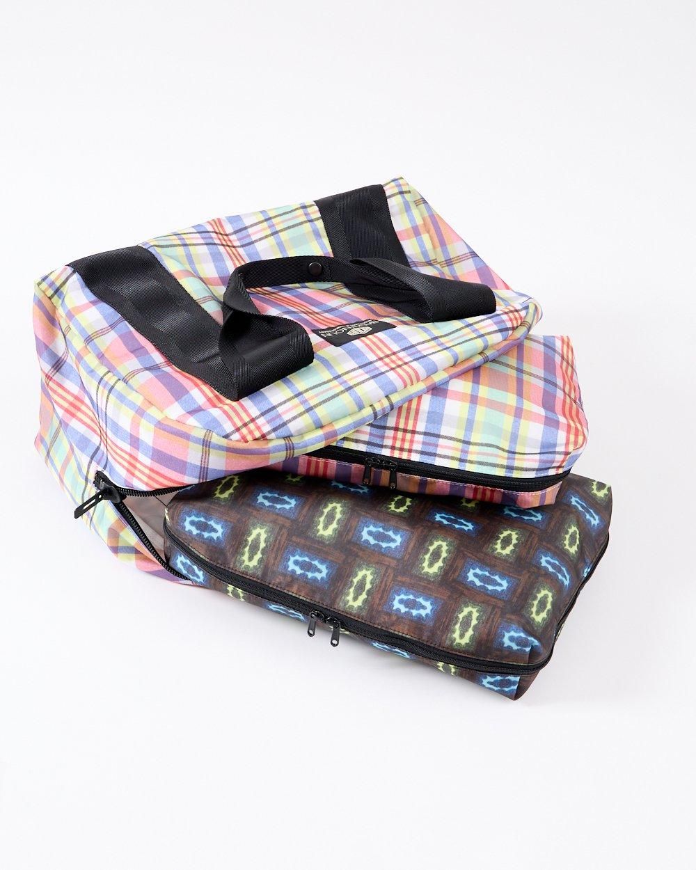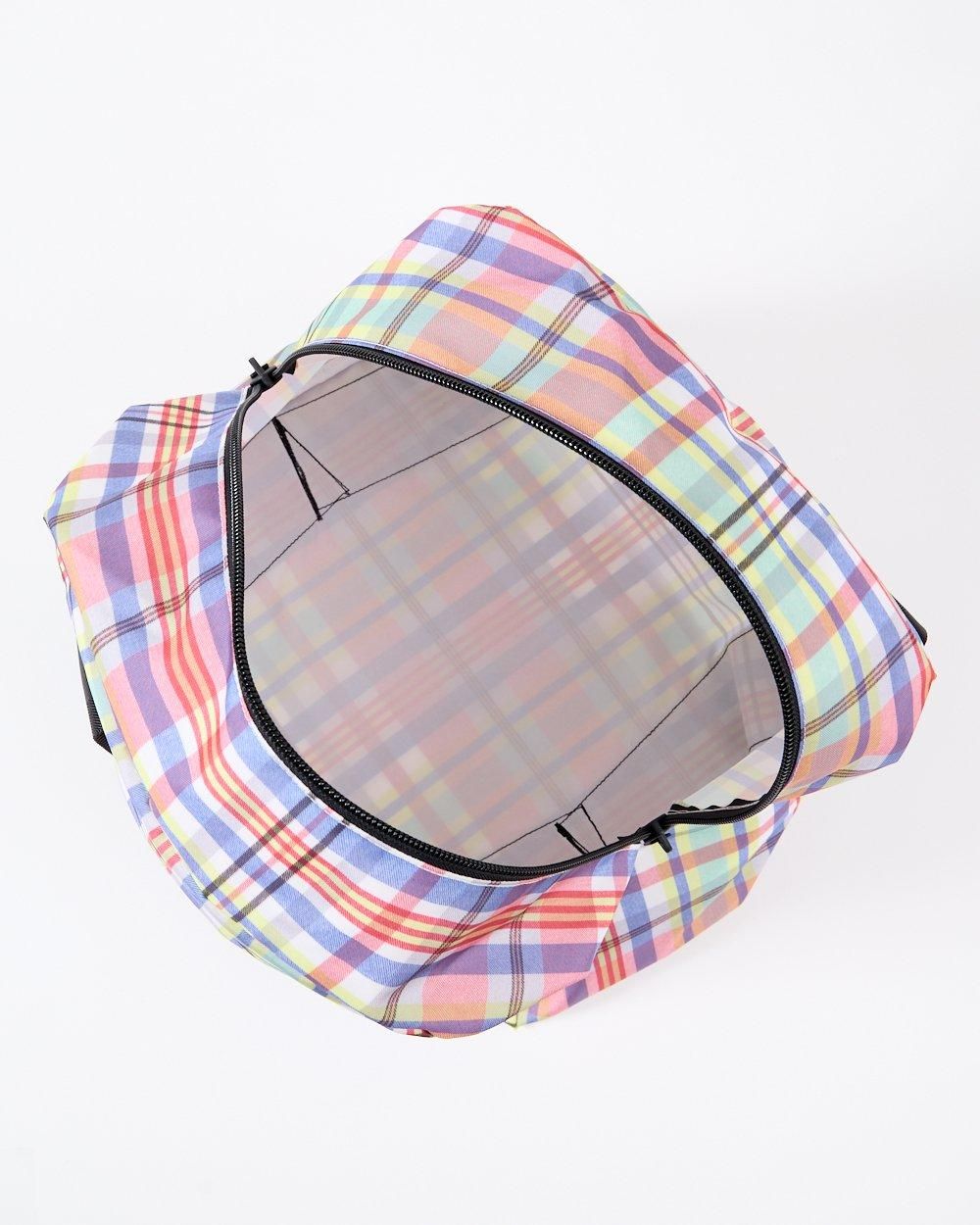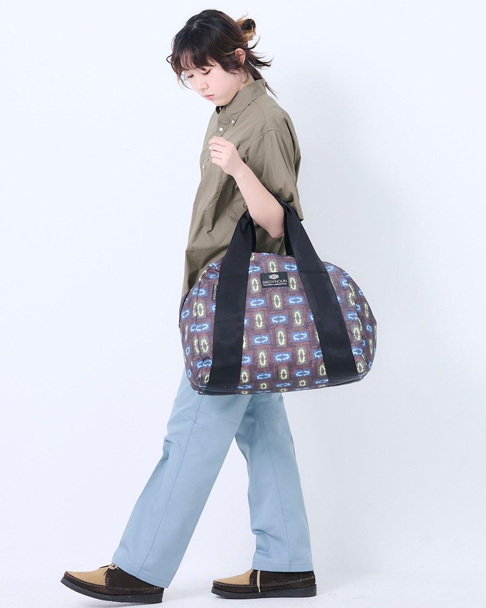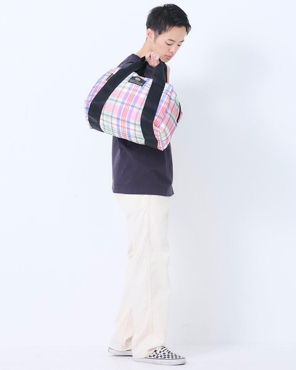 BAG’n’NOUNらしい愛嬌のあるチェック柄とホタル柄のナイロン生地はハリ感がありしっかりとした印象。