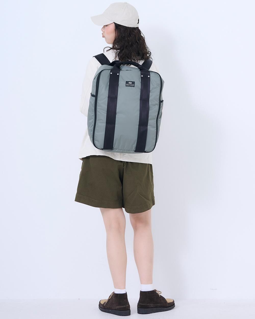 四角い箱型のシルエットにシートベルト素材が合わさり、