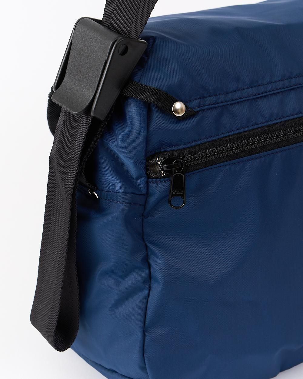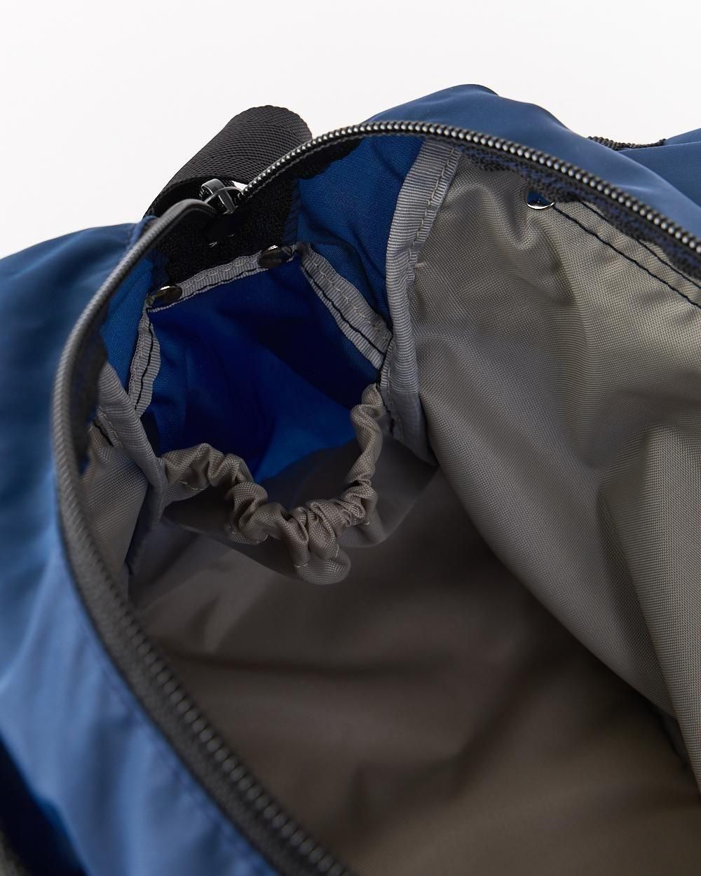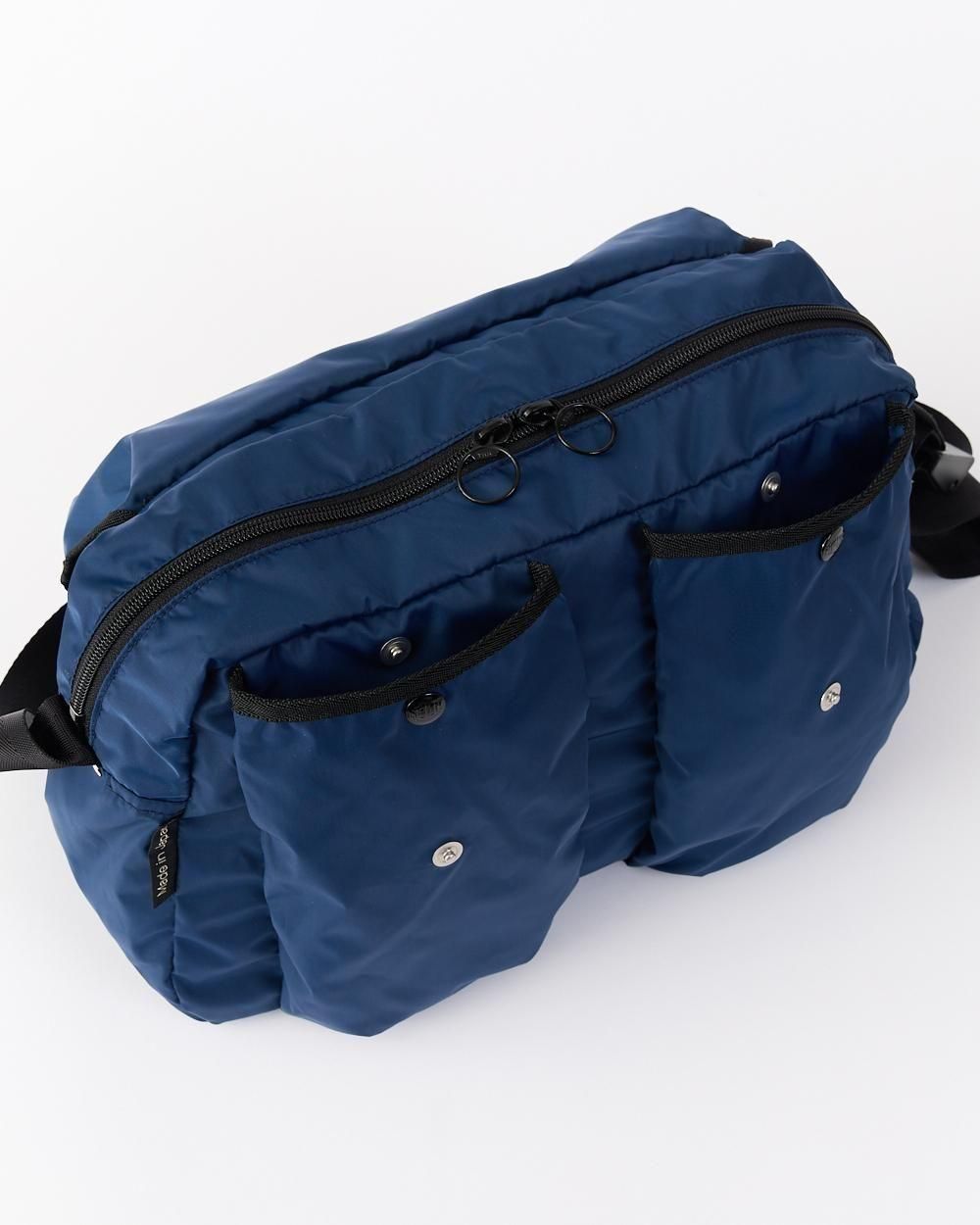 ジッパーと蓋の2重構造や、内側のドリンクポケット、高さのある2つのポケットが特徴です。