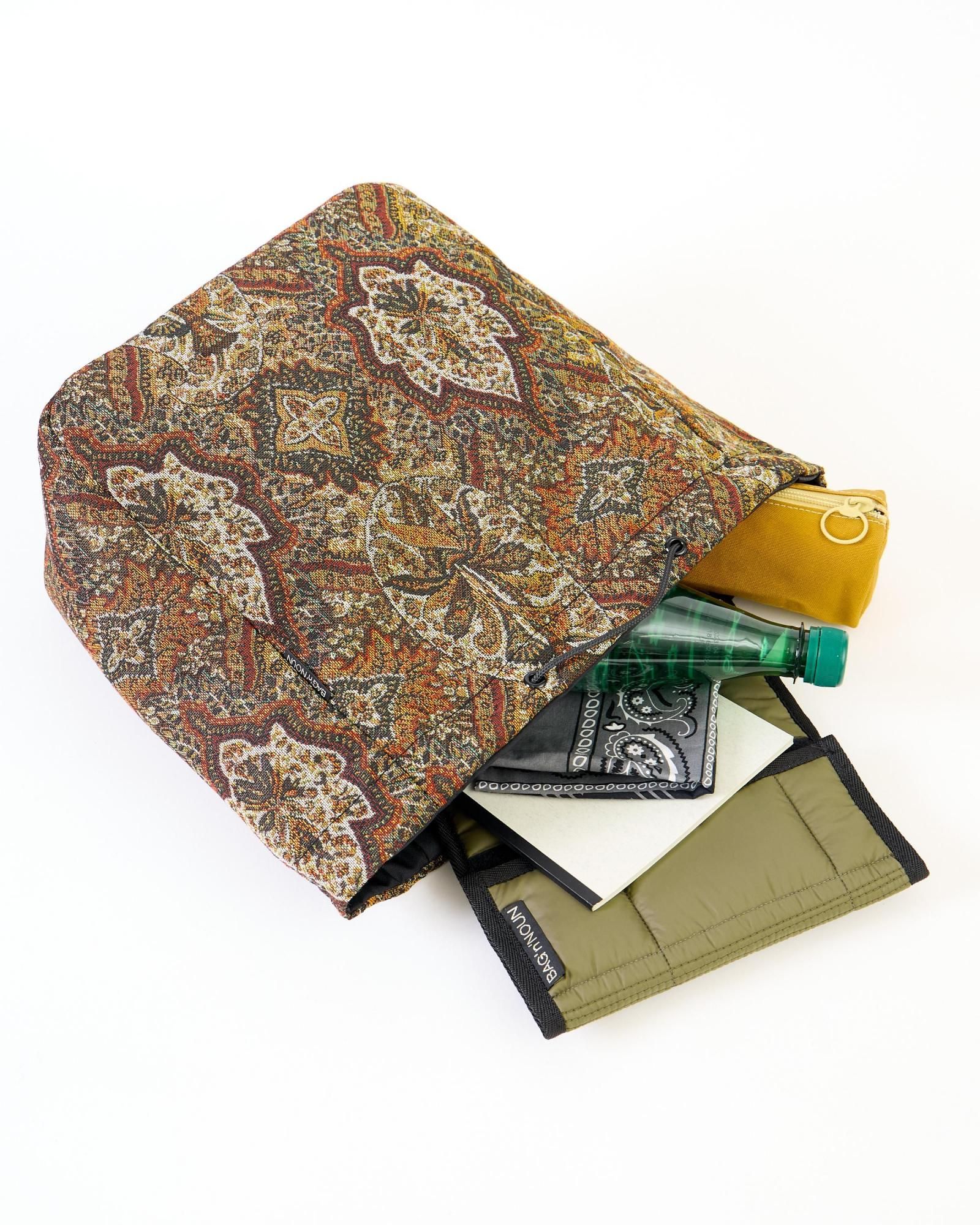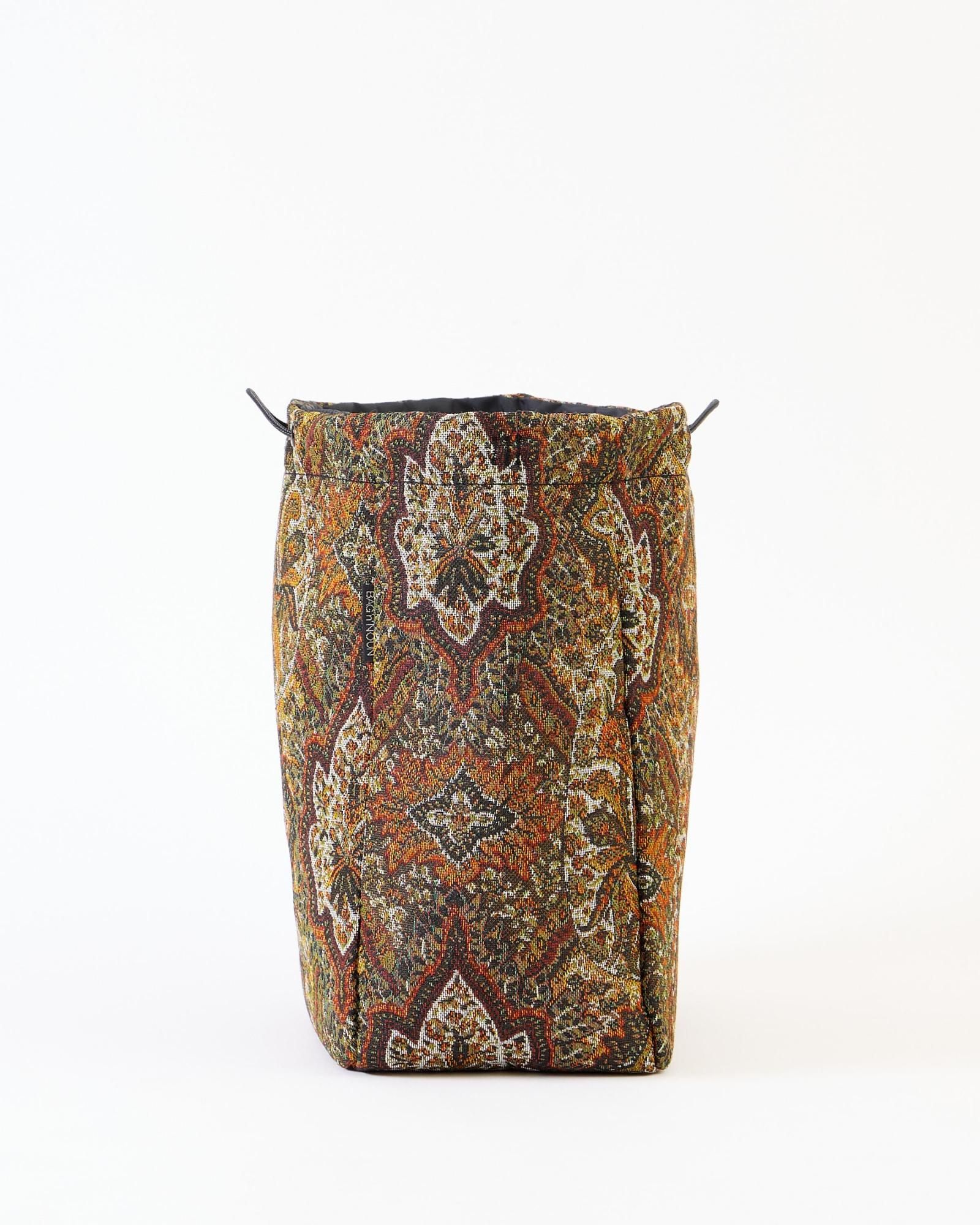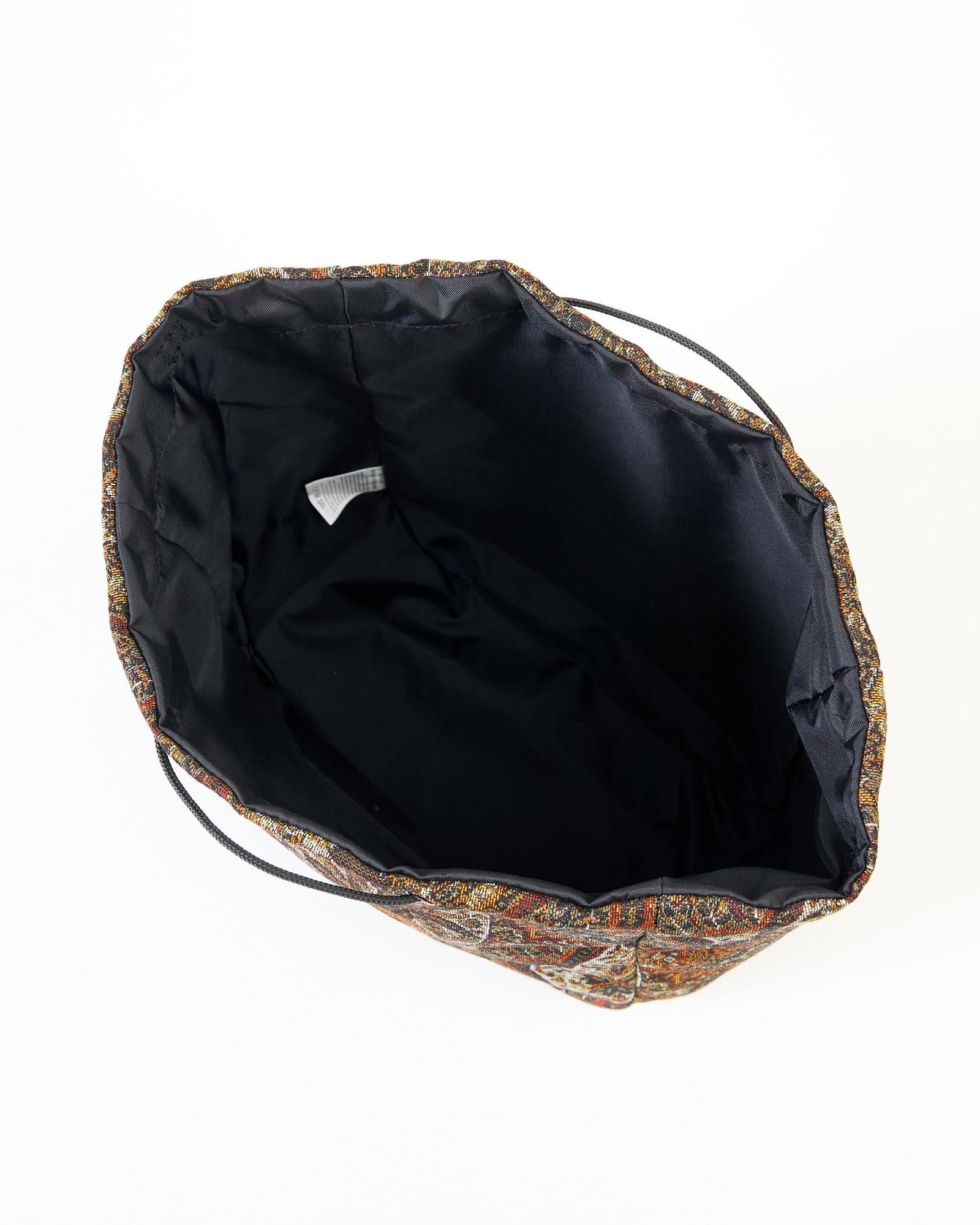 ゴブラン柄の織り模様が特徴のスピンドルバッグです。